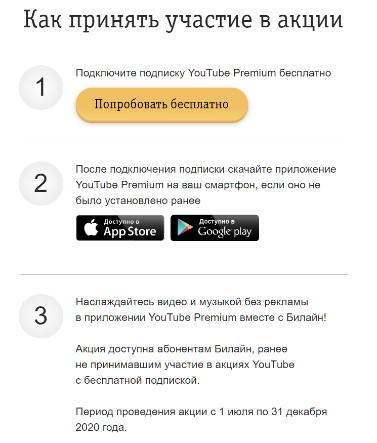 Официальная страница акции: https://moskva.beeline.ru/customers/products/youtubepremium/
