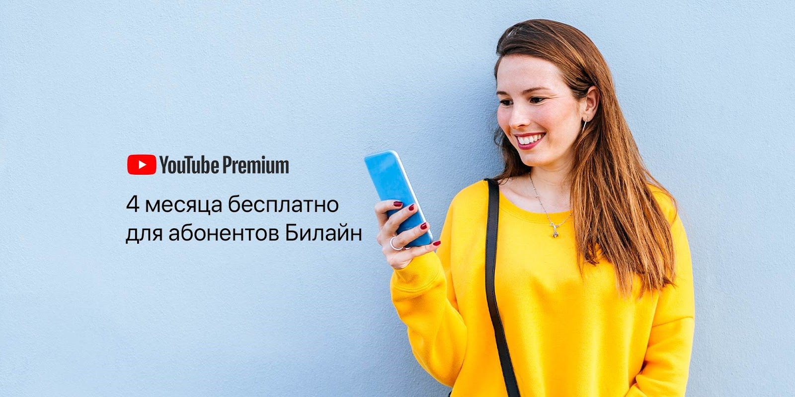 Билайн предлагает клиентам 4 месяца пользования подпиской YouTube Premium без необходимости оплаты.