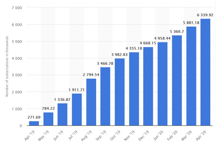 Рост числа абонентов 5G, данные Statista, соответствуют известным мне данным, которые иногда дает MSICT.