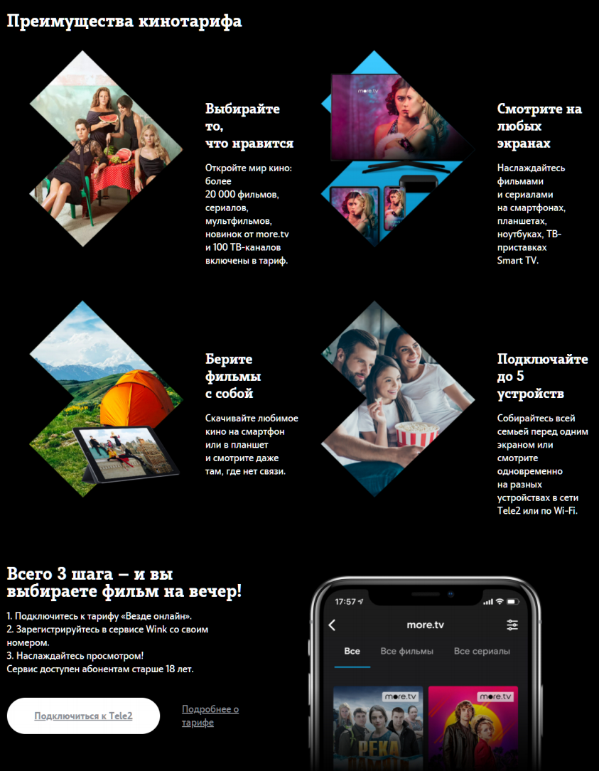 Кроме того, Tele2 включает бесплатную услугу "Везде онлайн.Wink" в тарифный план "Везде онлайн+" . Абонентам также обещан "бесплатный доступ к 100 ТВ-каналам от Wink, более 20 000 фильмов и сериалов". Здесь также действует правило - если продолжаете пользоваться тарифом c 2.09.2020, оператор трактует это как ваше согласие с предложенными изменениями. Ждем в недалеком будущем повышения цен и на этом тарифе?