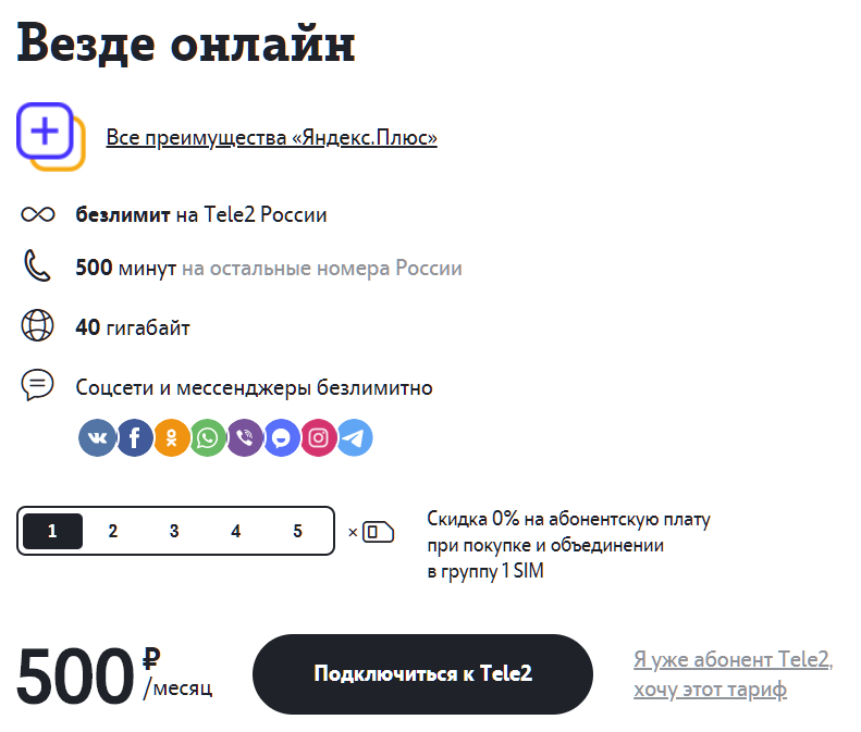 Ниже приведены основные условия тарифа "Везде онлайн", какими они заявлялись на сайте оператора на 1 сентября 2020 года.