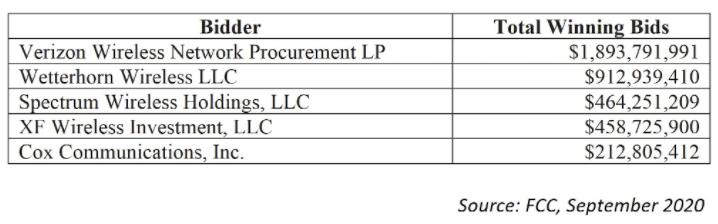Торги на частотном аукционе 3.5 ГГц завершились на прошлой неделе, обеспечив государству $4.59 млрд от продажи полосы в 70 МГц.