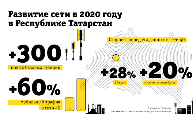 В совокупности, в 2020 году Вымпелком построил в Татарстане более 300 новых BS. При этом трафик абонентов Билайн в сети 4G/LTE в декабре 2020 года по внутренним данным компании вырос почти на 60% год к году. Доля трафика в сети 4G/LTE Билайн в Татарстане достигает 85% от всего трафика мобильной передачи данных в сетях мобильной связи Билайн в республике. Благодаря активному развитию сети LTE средняя скорость передачи данных в сети 4G не падает, а растет, несмотря даже на рост объемов потребления. Так, в Казани скорости выросли на 28% год к году, а в целом по республике - на 20%.