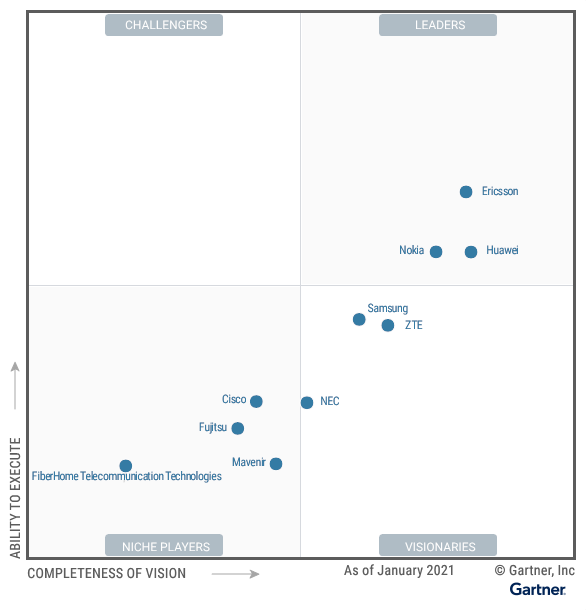 Где взять полную версию отчета? Здесь: 2021 Gartner Magic Quadrant for 5G Network Infrastructure for Communication Service Providers (потребуется регистрация).