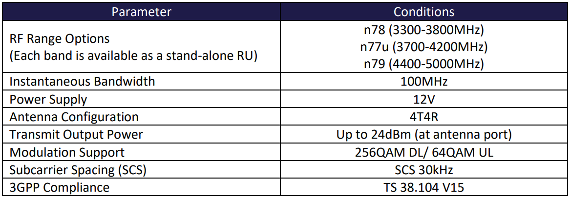 Может работать с полосой до 100 МГц. 5G Physical Layer 1 (PHY, L1) разделено между RU и DU (eCPRI Split 7.2x).