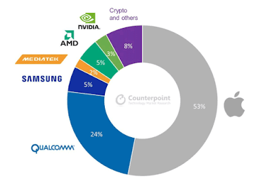 Относительно производственных мощностей. Qualcomm потребляет до 24% производственных мощностей 5нм TSMC, тогда как MediaTek лишь 2%. Красноречиво о перспективах. (Кстати, по части 7нм мощностей TSMC, Qualcomm также опережает Mediatek, хотя и не со столь показательным разрывом).