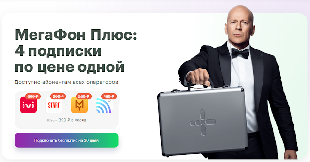 Единая подписка на все сервисы "МегаФон Плюс" - 399 руб. в месяц, что обещает экономию до 8 тысяч рублей в год, если подписаться отдельно на каждый из четырех сервисов. Подключиться может любой абонент любого оператора - на сайте plus.megafon.ru и в личном кабинете.