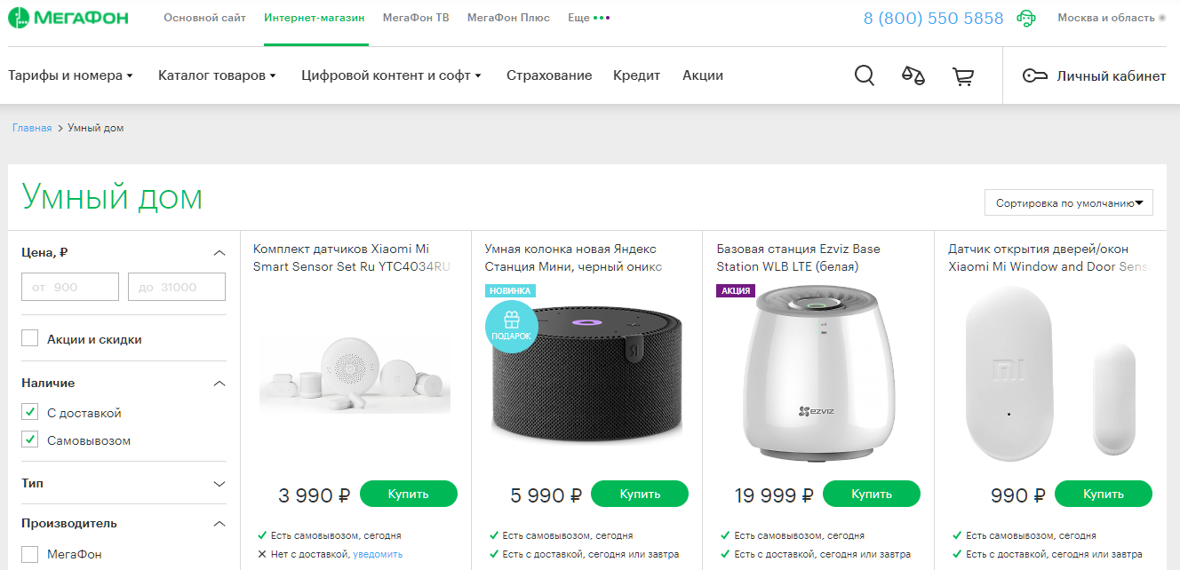 Такими цифрами делится "МегаФон". На 34% вырос спрос на товары для "умного дома" в сети МегаФон Ритейл в натуральном (штучном) выражении и на 41% в денежном.