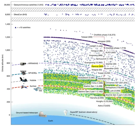 Но есть, конечно, и куда более реальные созвездия, создаваемые американскими, китайскими и европейскими участниками LEO-рынка. На картинке можно заметить и российский проект Рассвет.