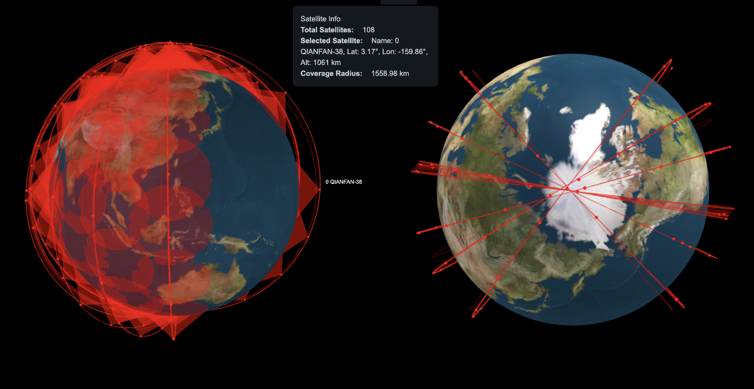 трехмерное покрытие и полярные орбиты созвездие Qianfan - на декабрь 2025 года, источник: NCAT