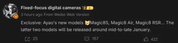 Согласно утечке, презентация двух из трёх новых моделей — Magic 8 Air и Magic 8 RSR — может состояться уже в середине или конце января.