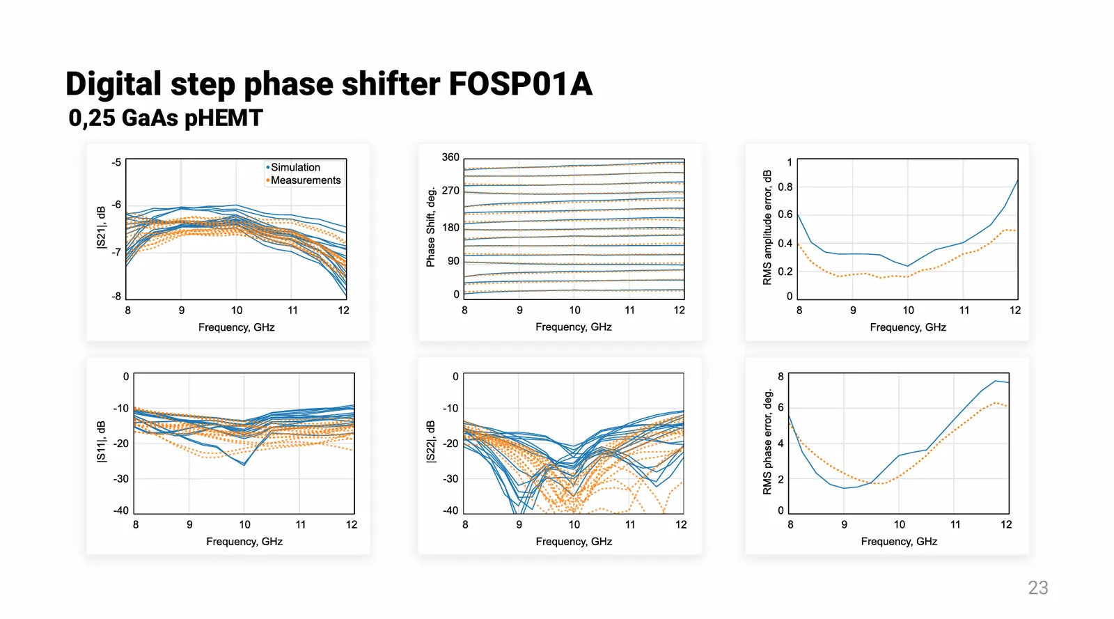 Технология уже прошла апробацию в реальных задачах. С её помощью было разработано и успешно изготовлено более десяти опытных образцов различных СВЧ МИС, включая малошумящие усилители, цифровые аттенюаторы и фазовращатели. На конференции были показаны убедительные данные: результаты измерений изготовленных чипов близко совпали с прогнозами симуляций.