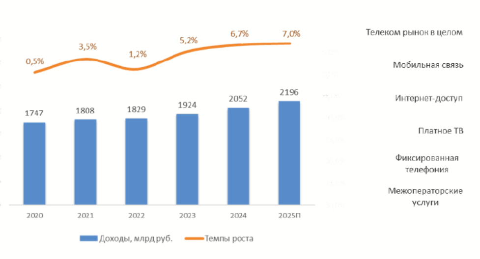 По предварительным данным «ТМТ Консалтинг», российский рынок телекоммуникаций в 2025 году вырос на 7,0%, его объем приблизился к 2,2 трлн руб. Это самая высокая динамика за более чем десятилетний период.