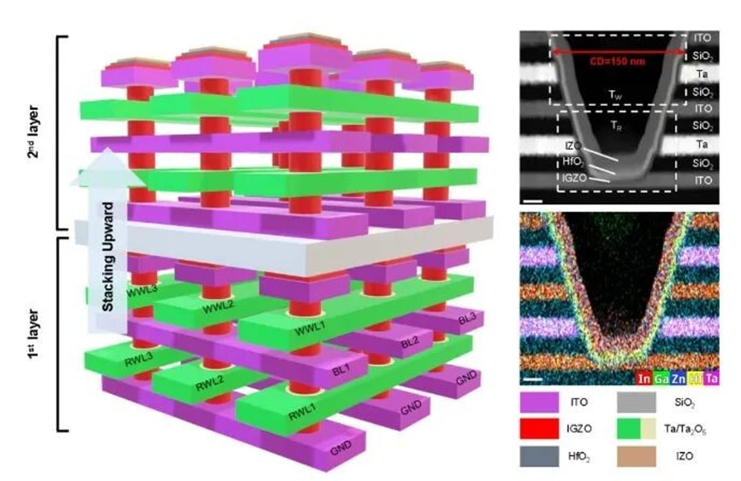 Дополнительным преимуществом IGZO является возможность формирования транзисторов при относительно низких температурах, что делает такие структуры совместимыми с BEOL-процессами и, следовательно, пригодными для наращивания слоев памяти поверх логических схем.