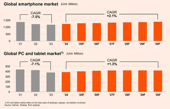 Рынки смартфонов и ПК были относительно насыщены по сравнению с другими областями применения микроэлектроники, такими как автомобильная промышленность и центры обработки данных (ЦОД). Но, по мере того как ИИ проникает в нашу повседневную жизнь, наблюдается тенденция к использованию сервисов ИИ непосредственно на персональных устройствах. Этот сдвиг ведет к росту спроса на ПК и смартфоны с поддержкой ИИ, поскольку пользователи ищут устройства, способные беспрепятственно обрабатывать сложные приложения ИИ.