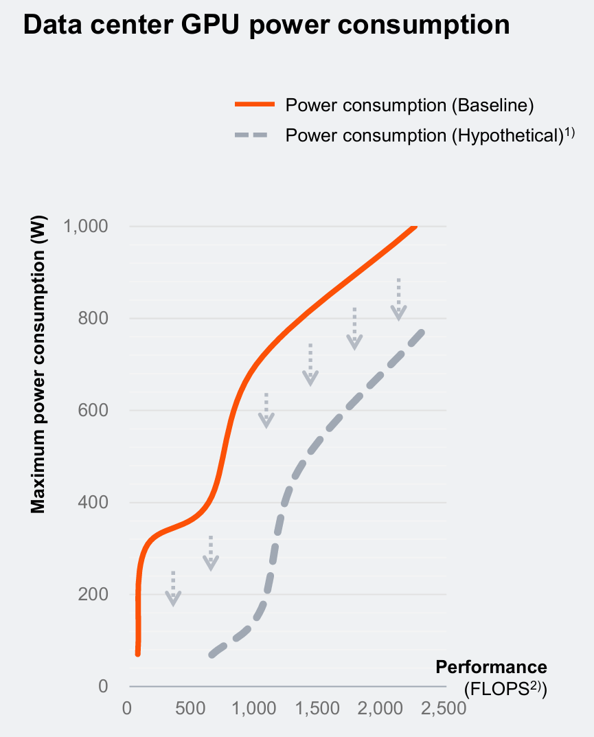 (1) Ожидается, что среднее энергопотребление GPU в долгосрочной перспективе снизится благодаря архитектурным усовершенствованиям, оптимизации моделей ИИ и ужесточению энергетических норм.