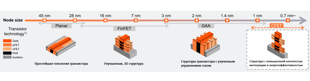 На картинке из отчета PwC показана эволюция основных архитектур транзисторов