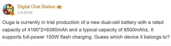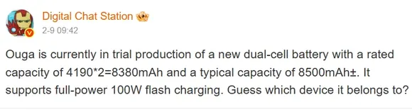 Сборка состоит из двух ячеек по 4190 мАч каждая, что даёт суммарную номинальную ёмкость 8380 мАч. При маркетинге производитель, как обычно, будет указывать типичную (typical) ёмкость, которая приблизится к 8500 мАч. Важным аспектом является сохранение скорости зарядки: согласно данным, система будет поддерживать быструю зарядку мощностью 100 Вт без агрессивного троттлинга (сильного снижения мощности для контроля нагрева). Это технически сложная задача при такой ёмкости.