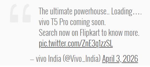 16.04. Vivo T5 Pro – 9020 мАч, 90 Вт, IP69 и Snapdragon 7s Gen 4 от 29 999 рупий