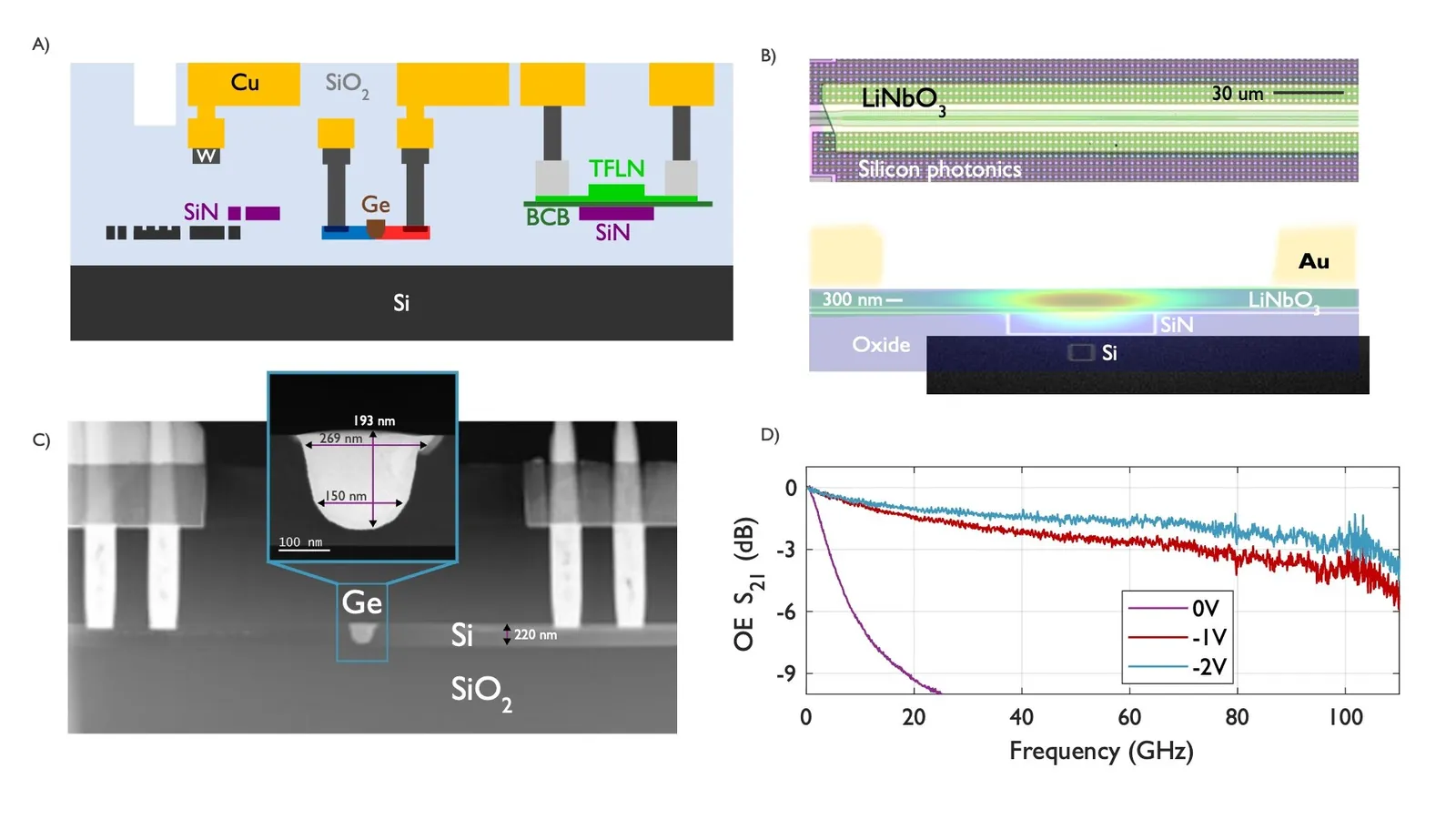 Та же команда ученых реализовала гетерогенную интеграцию модулятора из LiTaO₃ на кремниевый фотонный чип. Использовалась также микротрансферная печать, что подтвердило универсальность метода - он позволяет без ущерба для характеристик совмещать нагреватели, оптические фильтры и германиевые фотодетекторы. Скорее всего, подойдет этот метод и для ряда других материалов.